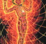 Imaginez une sorte de nuage fait de « poussière d’étoiles »… Sa couleur varie entre les rouges et les carmins, avec quelques touches de bleu électrique, nous dirons, pour simplifier. Ce nuage est fait de particules infinitésimales : des grains de Lumière pure, des « morceaux de Dieu-Le-Tout » en (Troisième) Personne ! Chaque grain de Lumière est une idée précise, un songe, une pensée, etc.